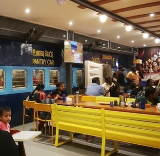Located in the vibrant heart of Madurai, Cine Suvai, established in 2019, is more than just a restaurant—it’s an immersive throwback to the golden era of cinema. Spread across two levels, this quirky dining space recreates the atmosphere of an old-school Art Deco movie studio, complete with vintage-style billboards, classic car-shaped booths, and even a repurposed train carriage where you can dine in true film-set fashion.