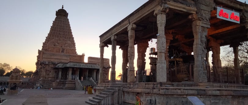 Tanjore (Thanjavur originally in Tamil) located approximately 40 kilometres—or about an hour's drive—from Kumbakonam, holds immense historical and cultural significance. Before exploring the Brihadeeswarar Temple in Tanjore, it's essential to understand a bit about Emperor Raja Raja Chola and the Chola capital city. This background helps create a meaningful context for appreciating the grandeur of both the temple and the town.